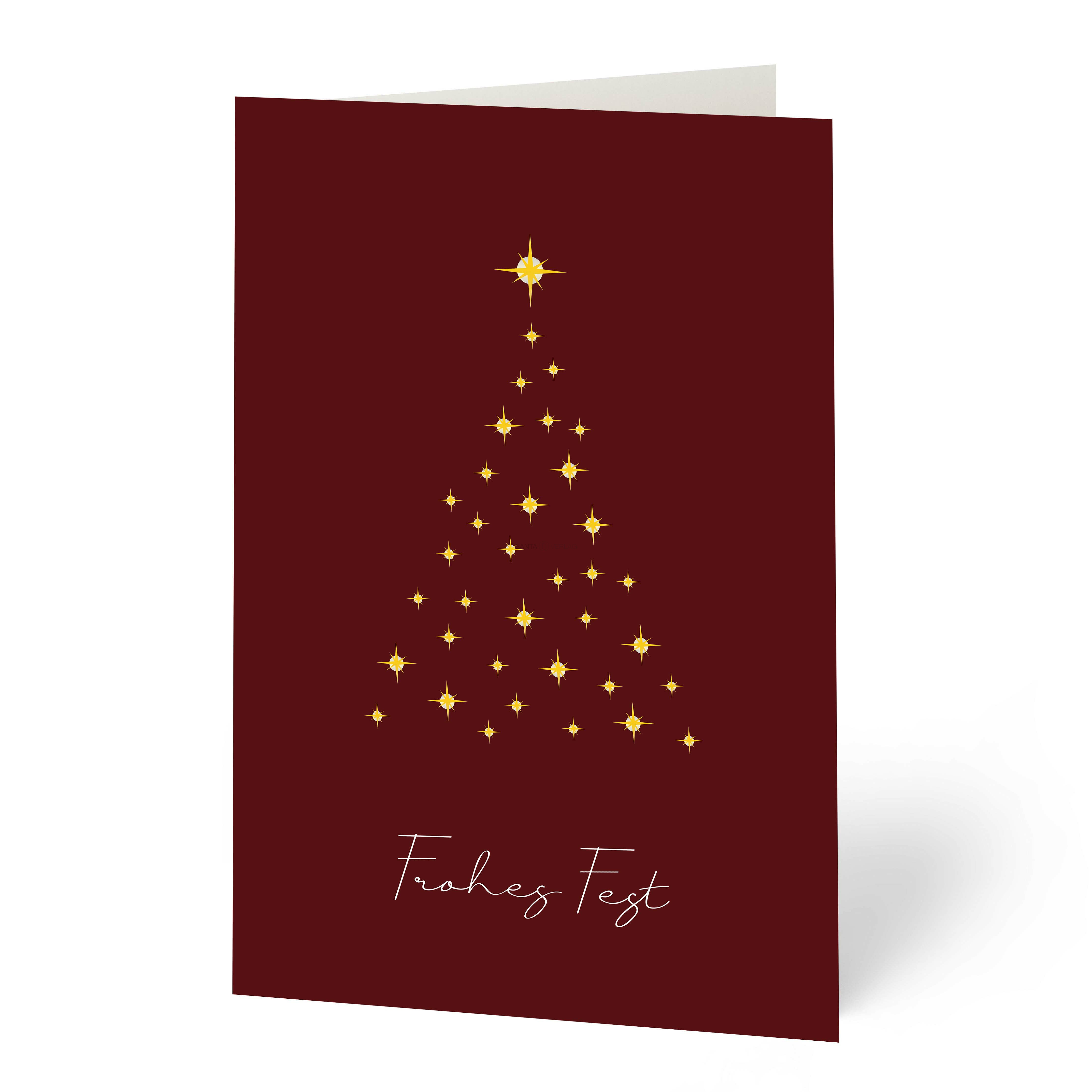 Weihnachtskarte, Tannenbaum im Lichterglanz wünscht frohes Fest