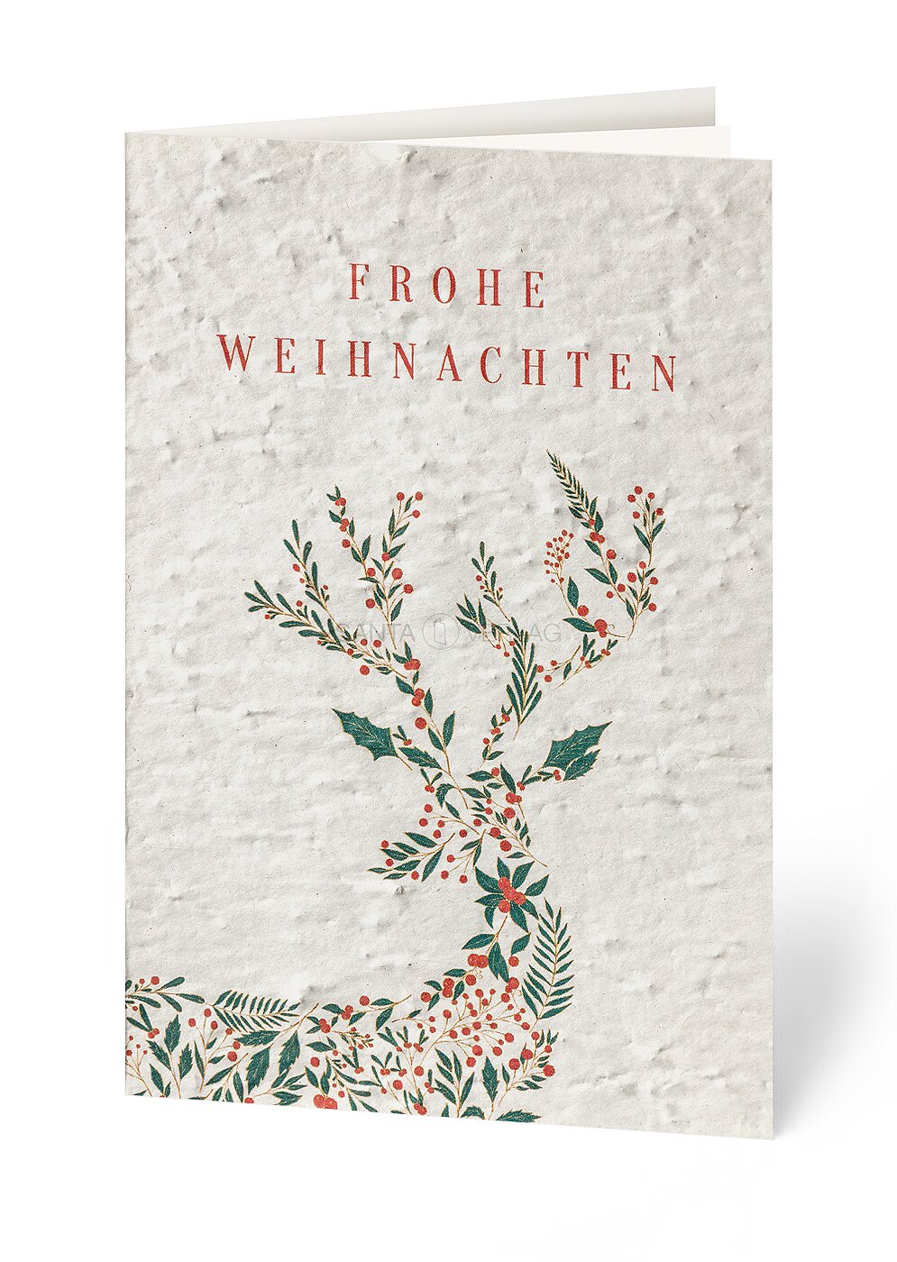 Grüner Hirsch (Samenpapier Weihnachtskarte)