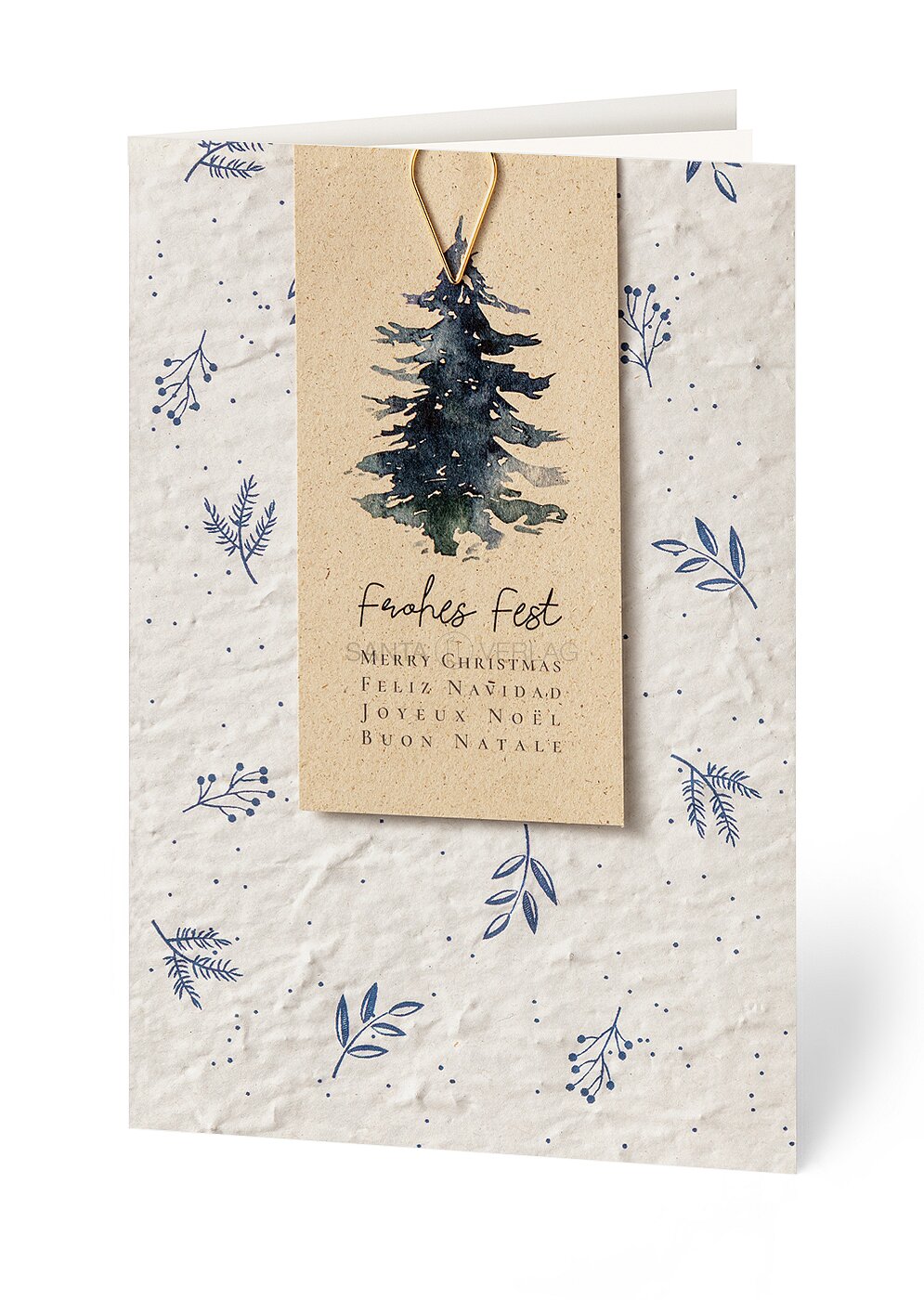 Lesezeichen Blaue Tanne (Gras-und Samenpapier Weihnachtskarten)