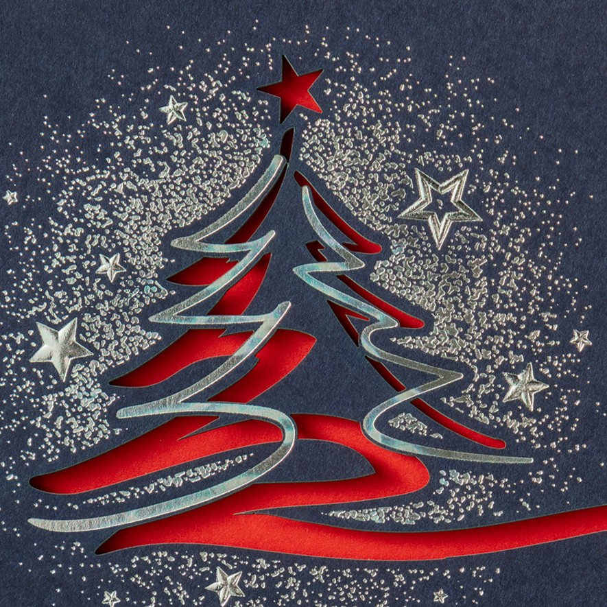 Schwungvoller Baum (internationale Weihnachtskarten)